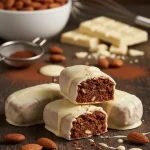 CAJA: Contiene una caja de Polvorón al cacao con almendra bañado en chocolate blanco